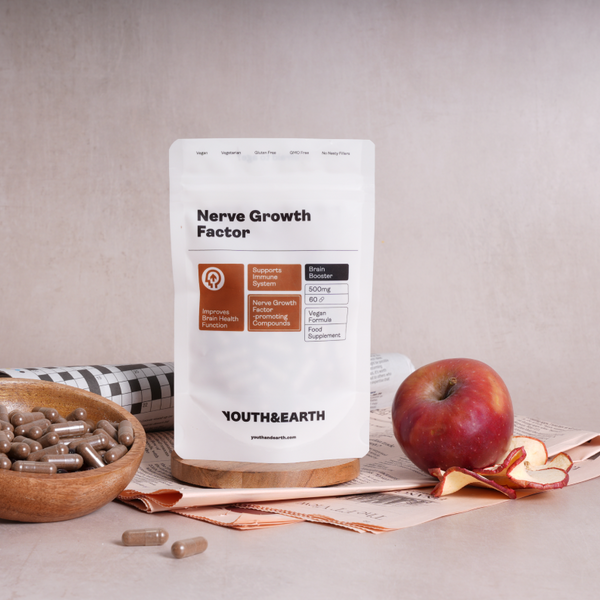 What sets Youth & Earth’s Nerve Growth Factor apart is the high potency and transparency of our formulation. Each serving includes key NGF compounds: 1% Hericenones and 4% Erinacines, which are known to cross the blood-brain barrier, making them highly effective in promoting nerve growth and brain health. Additionally, our product is tested to contain over 30% Beta-glucans, which support immune health.