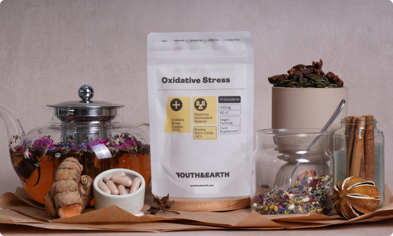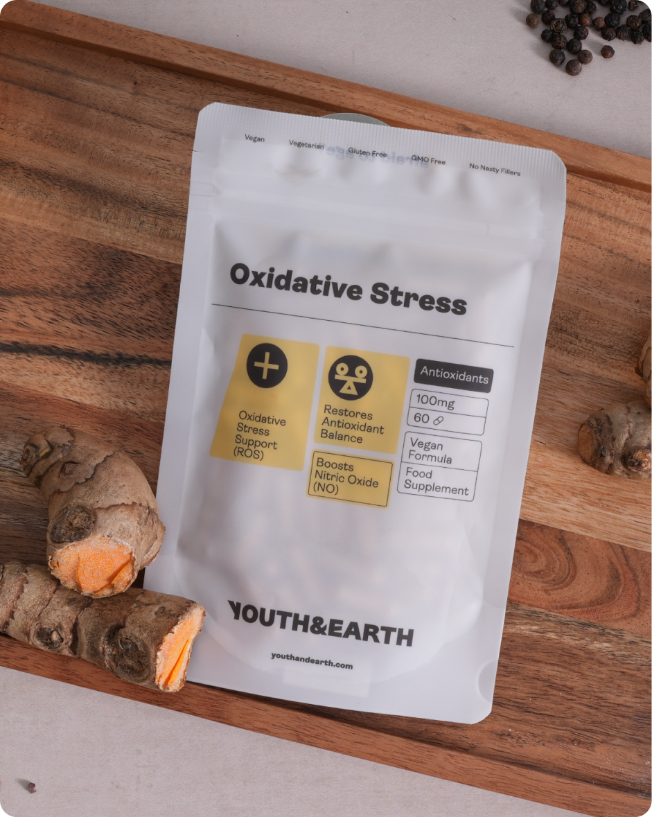 Our formula is a synergistic blend of natural extracts known for their high antioxidant content and ability to boost nitric oxide levels. It combines the benefits of multiple plant-based ingredients to provide comprehensive support for oxidative stress and circulation. Our product is made with a vegan-friendly and gluten-free formula, ensuring it is suitable for everyone. The Youth & Earth Nitric Oxide (Oxidative Stress) is free from artificial fillers, colours and GMOs, proudly manufactured in the UK in a facility that follows cGMP standards.