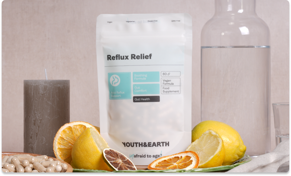 Experience the gentle yet effective relief of Reflux Relief by Youth & Earth. Trust us to provide a natural solution for acid reflux and digestive wellness.